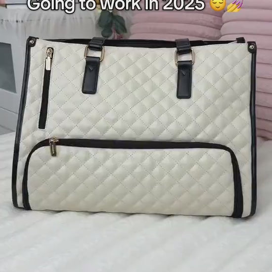Stress-free mornings start with one tote. Stop juggling multiple bags and say goodbye to clutter. With dedicated compartments for your laptop, lunch, and essentials, this tote keeps everything in place, perfect for the busy woman on the go.